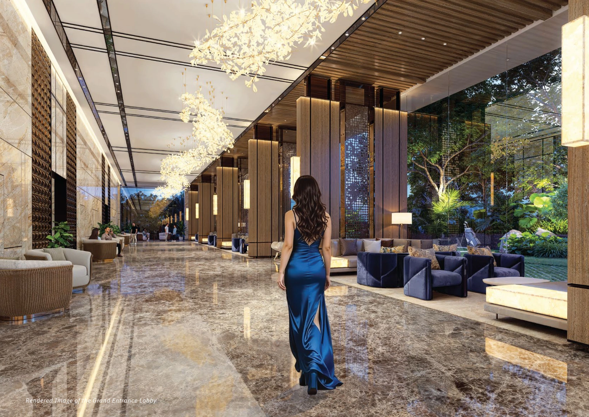 21,000 sq.ft. grand entrance lobby with 6000 sq.ft. drop‑off lobby – an unmatched welcome. Each residence enjoys a private elevator opening into your private foyer.